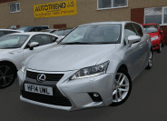 2014(14) TOYOTA LEXUS CT 200H PREMIER HYBRID Petrol/Electric.. 1.8 (136bhp) Sun Pro.. Electric Sunroof.. CVT Stepless Automatic..47,641 Miles with a Service History.. Economical 5-Door Hatchback in Sparkling Silver.. 17" Alloy Wheels with Michelin Tyres.. Colour matched bumpers, door mirrors, rear spoiler and sharks fin roof antenna.. Dark tinted rear privacy glass.. Front sport bumper with fog lamps.. Luxurious Cream Leather Upholstery.. Heated, Front Electric Sports Seats.. Cream interior trims and roof lining.. Rake and reach steering column.. Centre console with cup-holders & Lidded storage.. USB/AUX ports.. 12v 120W power outlet.. Premium Surround Dolby Digital Audio/Media System.. CD/Radio/Bluetooth.. Sat Nav.. Micro SD card Slot.. Dual Climate control.. Cruise control.. Eco/Sport/EV Driving Modes.. All electric windows.. Remote central locking (2-Keys).. Isofix.. Service History with 8 Lexus dealer stamps and one Independent..