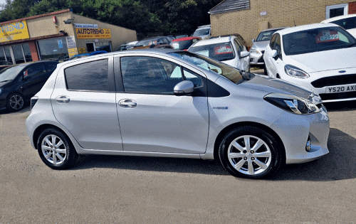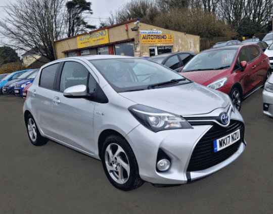2017(17) TOYOTA YARIS ICON HYBRID VVT-i CVT AUTOMATIC..1.5 Petrol and Electric .. EV & ECO Modes.. £20 Road Tax.. 48,040 Miles with a FULL TOYOTA Service History (9-Service Stamps).. Cornish 5-Door Economical Hatchback in Classic Silver with Colour matched Bumpers, Door Mirrors and Handles.. Silver & Grey Alloy Wheels.. Front sport Bumper with Piano Black And Chrome Grill and Fog lamps.. Daytime Running Lights.. Rear Privacy Glass.. Two-Tone Grey Stripe Upholstery with Silver Stitching Detail.. Multi Head Restraints and Airbags.. Front Sporty Seats, Drivers with Height Control.. Multi-Function Stitched Leather Steering Wheel with Grey Laquer Trim.. Rake and Reach Steering Column.. Touch Screen Radio/Bluetooth/Phone connectivity.. USB Port .. 12V Power Outlet.. Dual Zone Climate Control A/C.. Cruise Control.. Rear Colour Camera.. Electric Front Windows.. Remote central Locking (Two Keys).. Isofix.. Low Mileage Cornish Hybrid.. £10,897