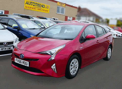 2016(66) TOYOTA PRIUS HYBRID BUSINESS EDITION PLUS 1.8VVTI (120 bhp)..Petrol-Electric.. Front Sport bumper with fog and daytime driving lamps.. Heated Front Sport Seats.. Variable Automatic..60,251 Miles with a Toyota Dealer Service history.. Stunning in Hypersonic Pearlescent Red.. 15" Alloy wheels with Wheel Caps.. Colour matched bumpers, door mirrors, handles, rear spoiler and Sharks fin Roof Antenna.. Dark tinted glass.. Charcoal Grey Satin Upholstery with Subtle Graphics.. Heated front Sport Seats.. Centre arm rest-lidded storage.. Piano black lacquer, fascia and interior trims.. Pearlescent White Centre console with cup-holders and 12 120w power outlet.. USB & AUX ports.. Large touch screen Satnav/DAB Radio/Media/Bluetooth.. Phone connectivity.. Multi head restrains and airbags.. Rear centre armrest with built-in cup holders.. Isofix.. All electric windows.. Remote central locking (2-Keys).. Keyless entry and push button start.. Cruise control.. Dual control air conditioning.. Powerfold door mirrors.. Front and rear parking sensors.. Rear colour camera.. Economical 5-door Hybrid with a Toyota Service History..