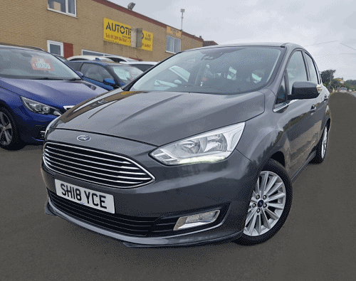2018(18) FORD C-MAX TITANIUM TURBO MPV 125bhp.. 21,831 Miles.. Finished in Dark Grey Metallic.. 17" Multi-Spoke Alloy Wheels.. Roof Rails.. Rear Privacy Glass.. Sporty front Bumper with Fog Lamps.. Two-Tone Grey Ribbed Upholstery with Stitching detail.. Height Adjustable, Front Sporty Seats with Lumber Support Control.. Multi-Function Leather Sports Steering Wheel.. Rake and reach Steering Column.. Touch Screen Satnav/DAB Radio/Media/Bluetooth.. Phone Connectivity.. Overhead Storage Compartment.. Panoramic Wide Angle, Additional Rear View Mirror.. Cruise Control with Speed Limiter.. Stop/Start.. Fast Clear Windscreen.. Centre console with Cup-Holders.. Two USB Ports And 12 Power Outlets.. Dual Zone Climate Control.. Power Fold Door Mirrors.. Led Daytime Running Lamps.. Rear Parking Sensors.. Ford Carpet Floor Mats.. (The Wheelchair Lift Has Been Removed) SOLD