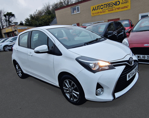 2015(15) TOYOTA YARIS ICON VVTi 1.3.. Service History with 9 Stamps.. £35 Road Tax.. 62,771 Miles.. Smart 5-Door Hatchback, Finished in Polar White With Colour Matched Bumpers, Drro Mirrors and Handles.. Deep Front Grill.. Fog Lamps.. 15" Multi-Spoke Alloy Wheels.. Green Tinted Glass.. Two-Tone Grey Upholstery with Graphics.. Height Adjustable Drivers Seat.. Multi-Function Leather 3-Spoke Sports Steering Wheel.. Rake and Reach Steering Column.. Multi Head restraints and Airbags.. Touch Screen Radio/Bluetooth Phone Connectivity.. USB & AUX Ports.. 12v Power Outlet.. Centre Console with Cup-Holders.. A/C.. Drinks Holders In Door Pockets.. Remote Central Locking (2-Keys).. Isofix.. Bespoke Yaris Carpet Floor Mats and Moulded Boot Floor Protector.. SOLD